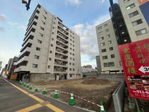 それとカナモト前、変則交差点も改修工事が始まっており、いよいよ創成イーストが目に見えてきております!!
